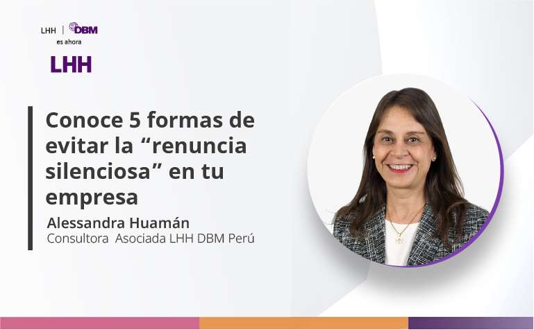 La renuncia silenciosa se basa en que existen colaboradores que rechazan hacer más tareas que las que les corresponde por su posición en la empresa y deciden mantener un balance entre su vida profesional y vida personal, señala Alessandra Huamán, consultora asociada de LHH DBM Perú.