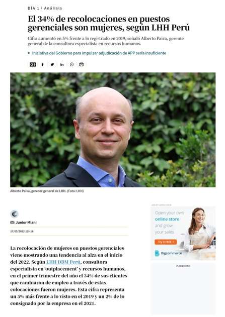 La recolocación de mujeres en puestos gerenciales viene mostrando una tendencia al alza en el inicio del 2022. Según LHH DBM Perú, consultora especialista en ‘outplacement’ y recursos humanos, en el primer trimestre del año el 34% de sus clientes que cambiaron de empleo a través de estas colocaciones fueron mujeres. Esta cifra representa un 5% más frente a lo visto en el 2019 y un 2% de lo consignado por la empresa en el 2021.