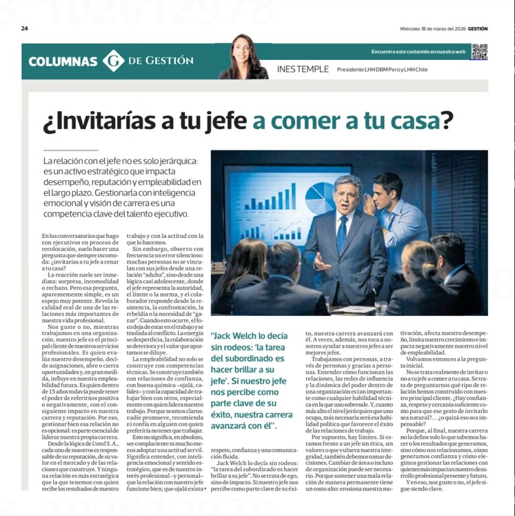 Artículo por Inés Temple, presidente de LHH DBM Perú y LHH Chile. Gestión. Pág.24.