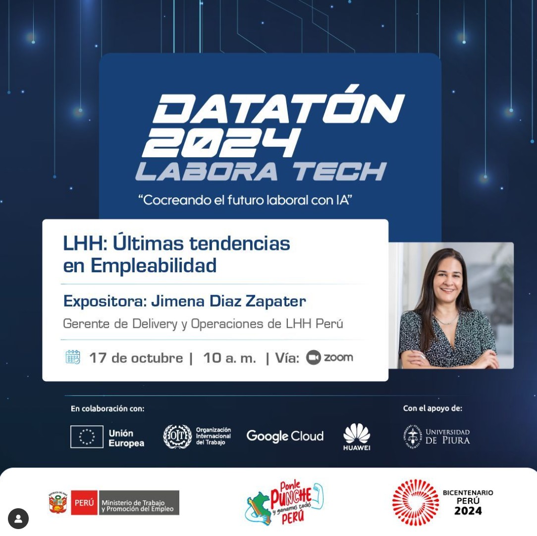 Jimena Diaz, Gerente de Delivery y Operaciones de LHH DBM Perú, participó como speaker en el evento Datatón2024 Labora Tech: “Cocreando el futuro laboral con AI! 🙌
