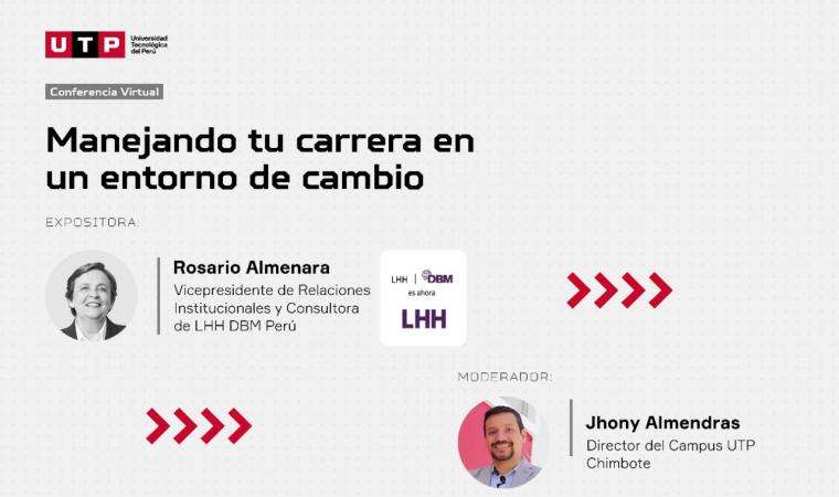 La primera exposición, “Manejando tu carrera en un entorno de cambio”, se realizará este martes 26 de enero, a las 7:00 de la noche. La ponencia estará a cargo de Rosario Almenara, vicepresidente de Relaciones Institucionales y Consultora de LHH DBM Perú, quien cuenta con una amplia trayectoria asesorando a gerentes de alto nivel en sus procesos de transición laboral y manejo del cambio.