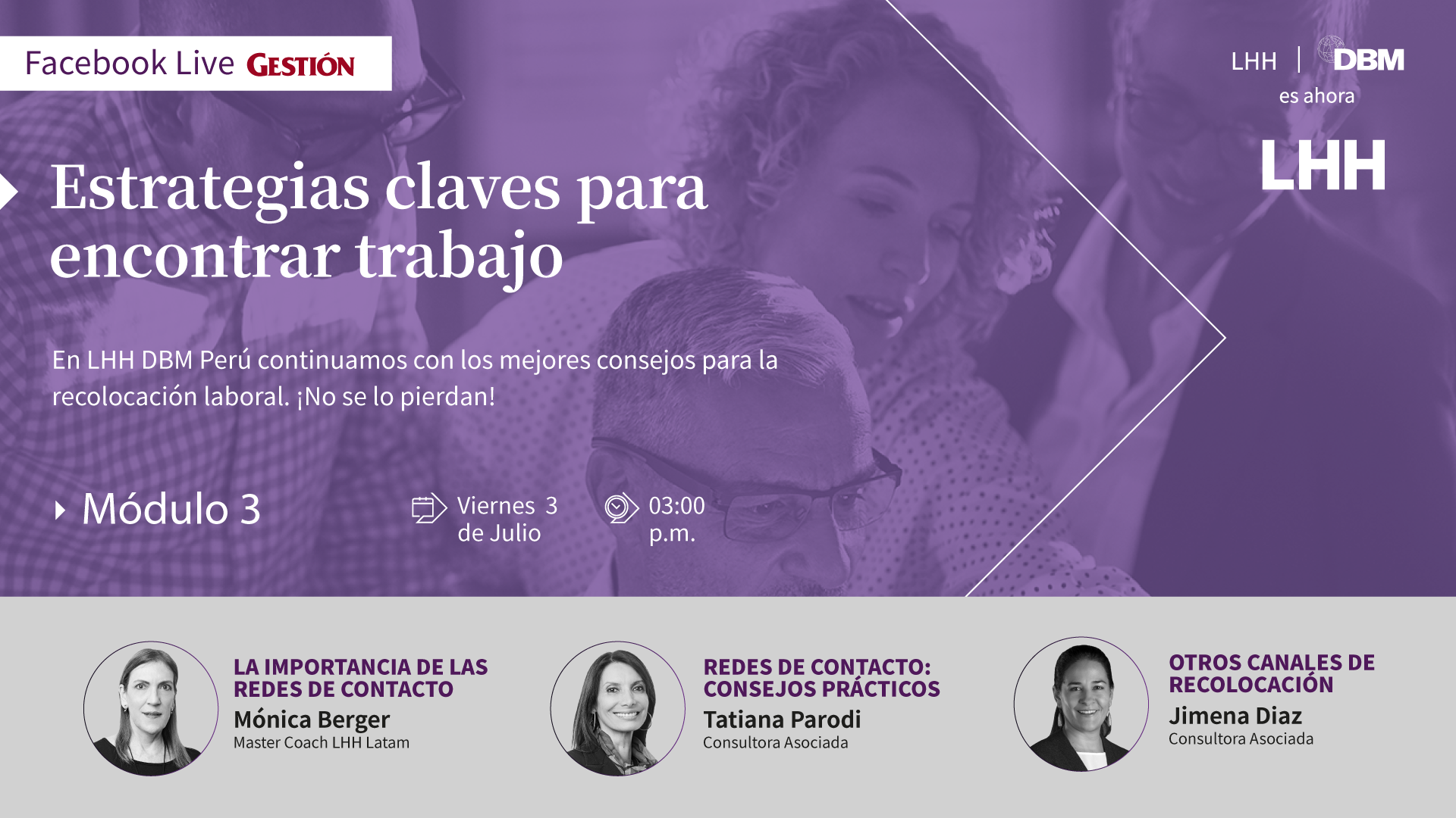 Ante los grandes retos que vivimos los peruanos por la crisis, en #LHHDBMPerú queremos contribuir asertivamente con el país, compartiendo mucha de nuestra experiencia y metodología, la que ha ayudado a decenas de miles de personas a recolocarse exitosamente en el Perú desde 1993. Para eso, hemos creado una serie gratuita de 4 #Webinars llamados: “Estrategias clave para encontrar trabajo”, dictada por 12 de nuestros consultores más expertos en el tema.